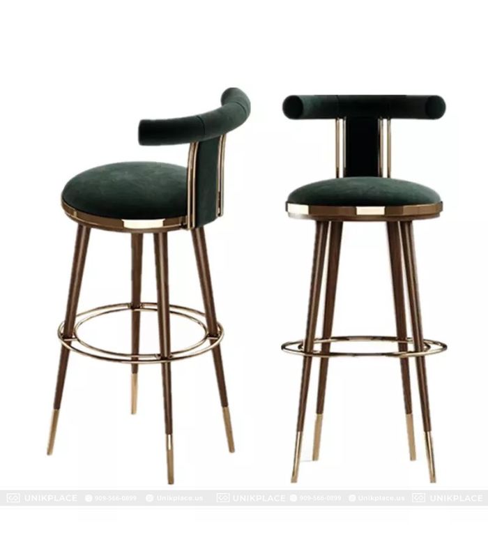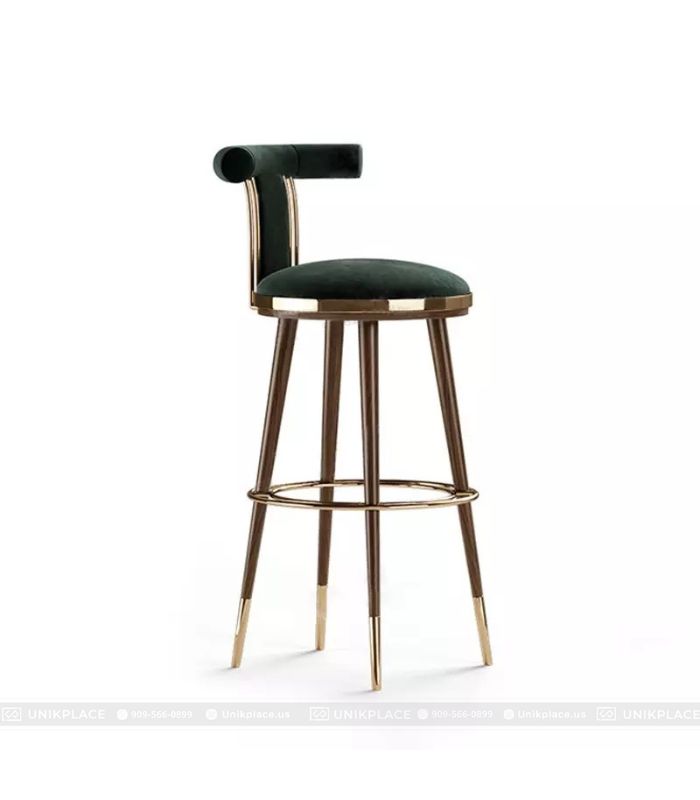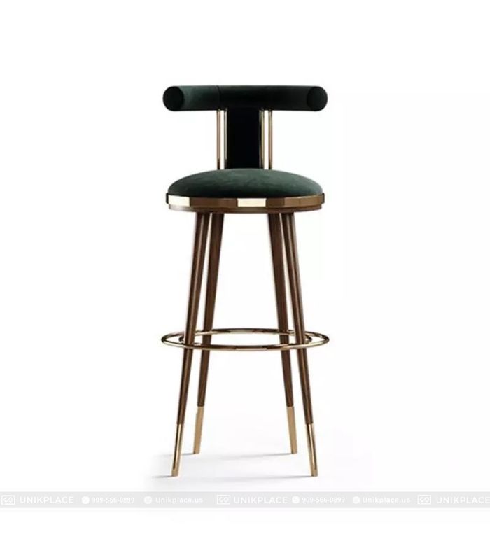 Ghế quầy bar sang trọng, đệm nhung êm ái, chân gỗ phối kim loại mạ vàng. Thiết kế hiện đại, sang trọng, chất liệu bền đẹp, nâng tầm không gian nội thất chuyên nghiệp.