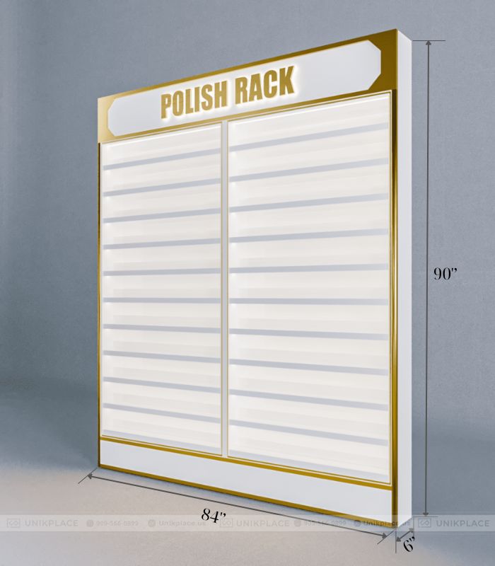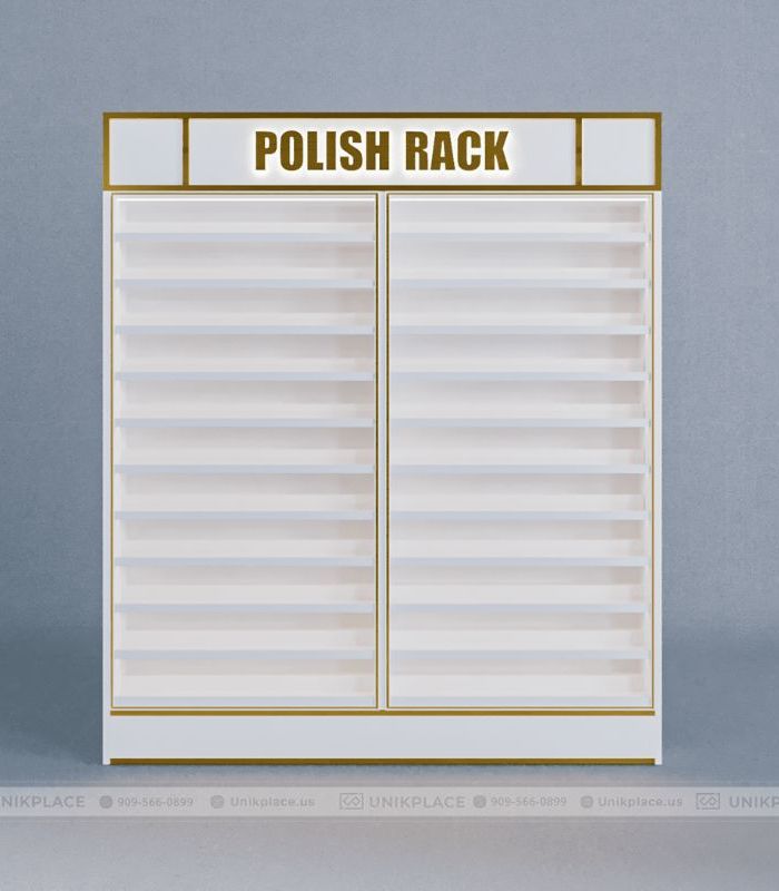 Kệ sơn móng cao cấp UnikPlace với thiết kế hiện đại, sức chứa lớn, tích hợp đèn LED chính là giải pháp trưng bày sơn móng đẳng cấp dành cho các tiệm nail chuyên nghiệp tại Mỹ.